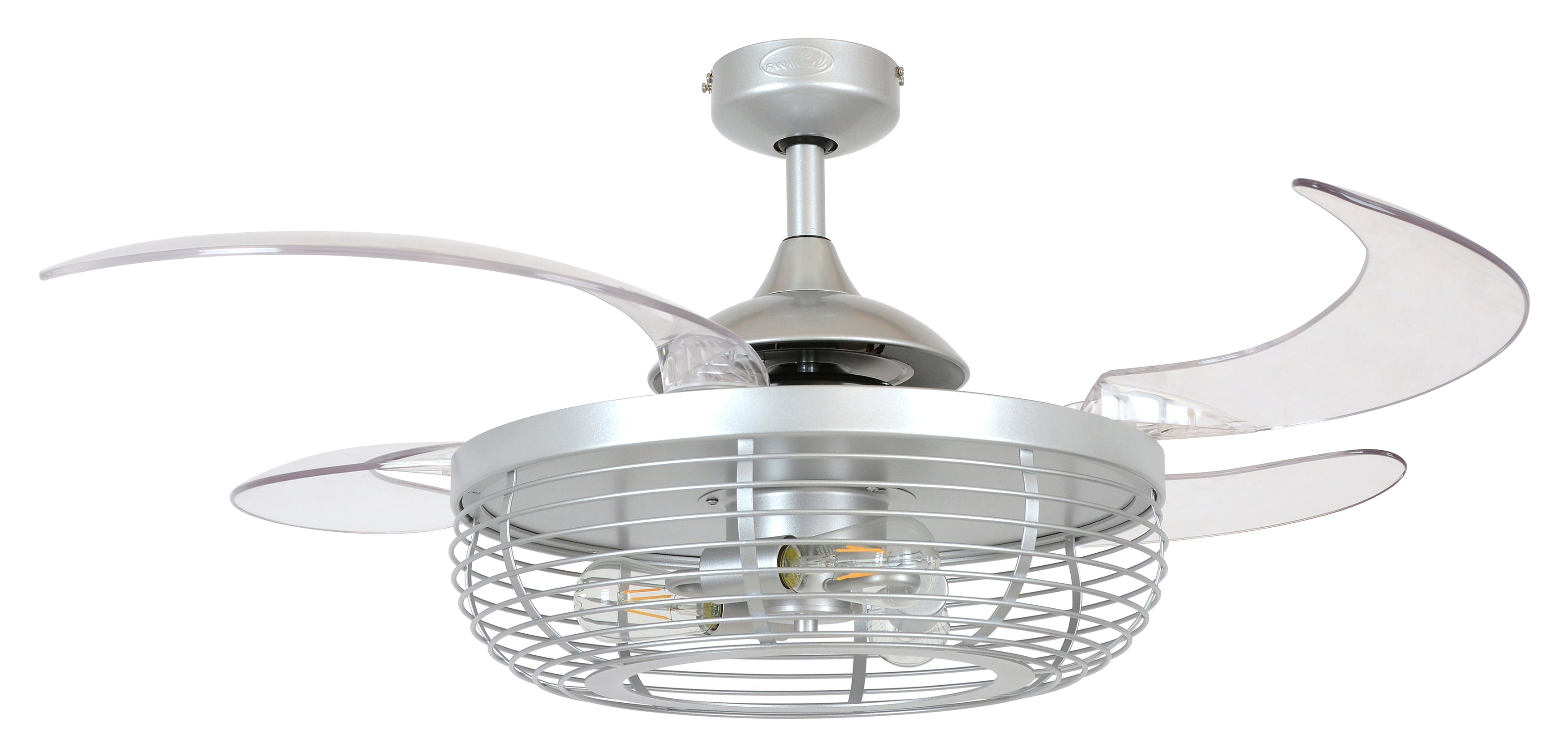 The Carbondale 48" Grey Silver Retractable Blade Ceiling Fan & Light (Remote Included) is an Australian original that combines advanced design with energy efficiency. The uniquely crafted ceiling fan features retractable blades that disappear when not in use, transforming into a sleek industrial pendant light, adding style while remaining unobtrusive. This fan is equipped with three dimmable vintage LED bulbs, a 3-speed remote control, and options for winter and summer modes, allowing for a customizable experience.