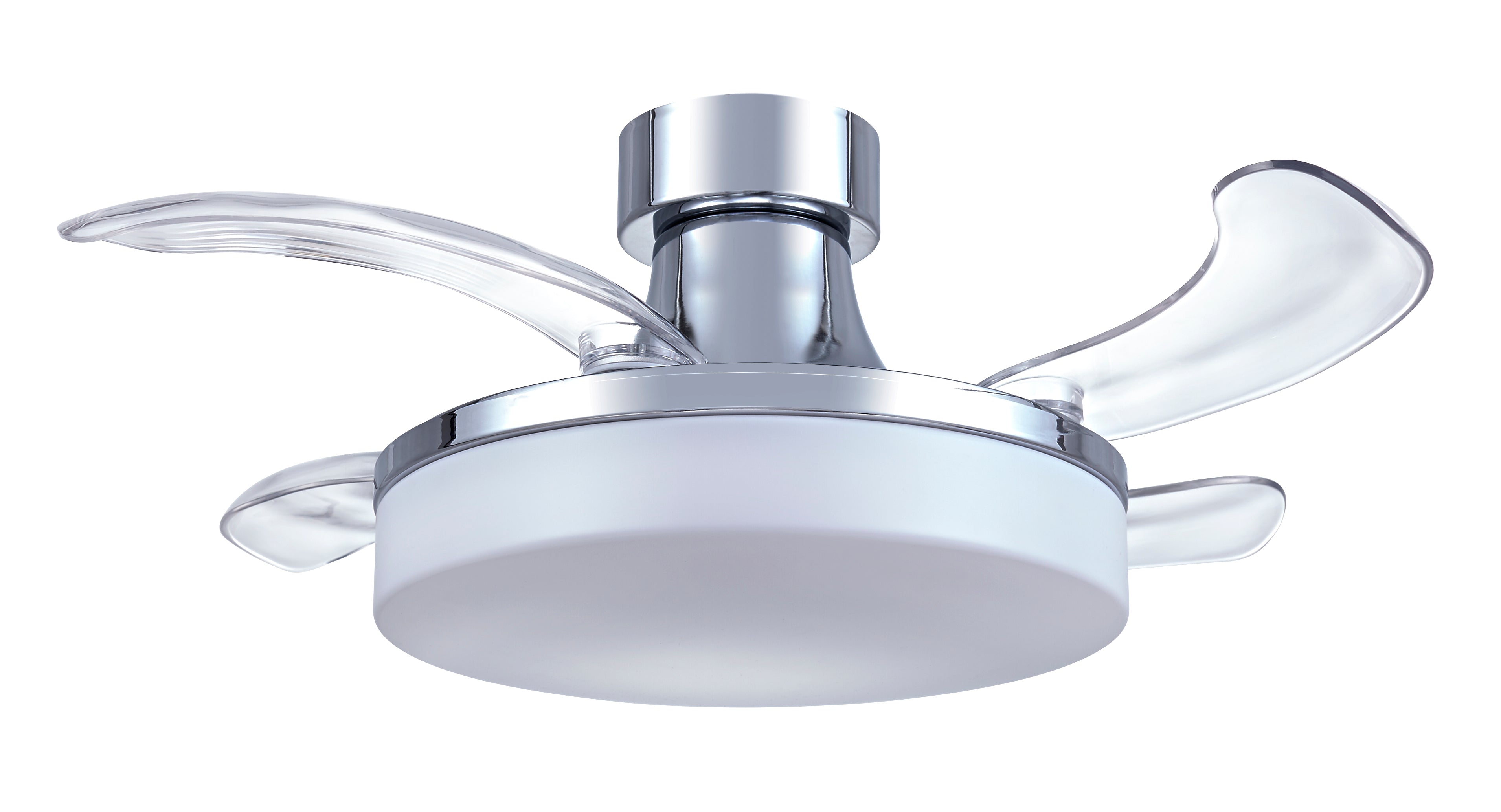 The Mya 36" Chrome Retractable Blade Ceiling Fan & Light is a sleek and modern fixture that combines functionality with aesthetic appeal. Featuring a low-profile or hugger design, this advanced ceiling fan is equipped with retractable blades that fan out when in use and retract when switched off, transforming into a stylish light pendant. It includes a dimmable LED light kit and comes with a convenient 3-speed remote control, allowing for easy operation.